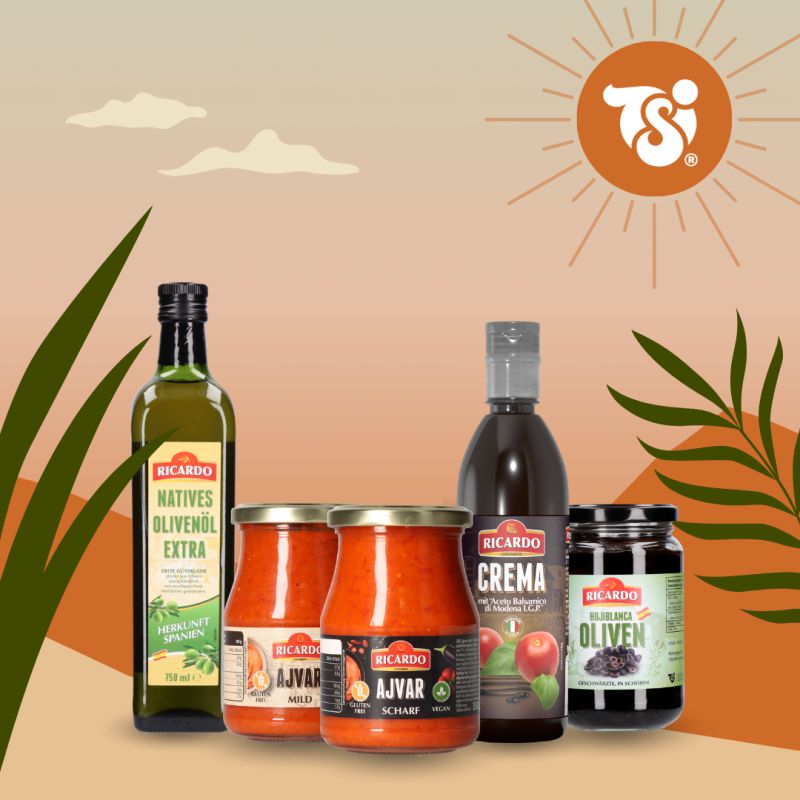 Mediterrane Klassiker für jeden Geschmack! RICARDO bietet eine Auswahl an Pasta, Olivenöl, Oliven, Peperoni, Knoblauch und Balsamico Crema – perfekte Zutaten für authentische, geschmackvolle Gerichte. Ideal für die Zubereitung klassischer mediterraner Köstlichkeiten mit intensiven Aromen.